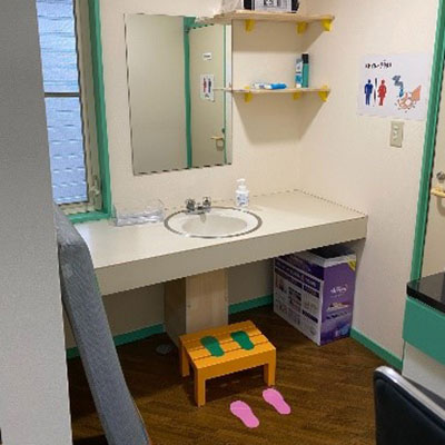 ♦玄関に入ったら、荷物の整理と手洗い・うがい・検温・消毒をします。